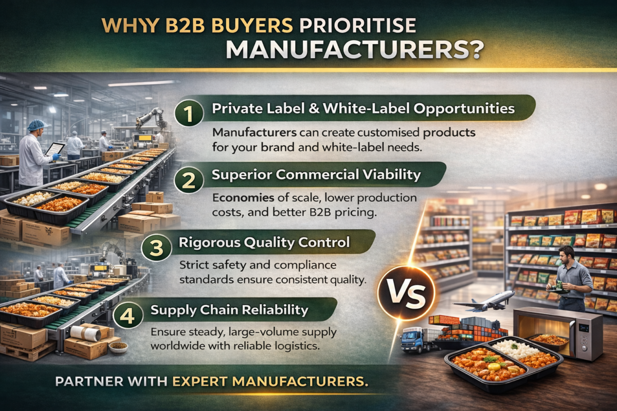 In this blog, we break down the key differences between ready-to-eat food manufacturers and retail RTE brands and explain why manufacturers are the preferred choice for B2B buyers.