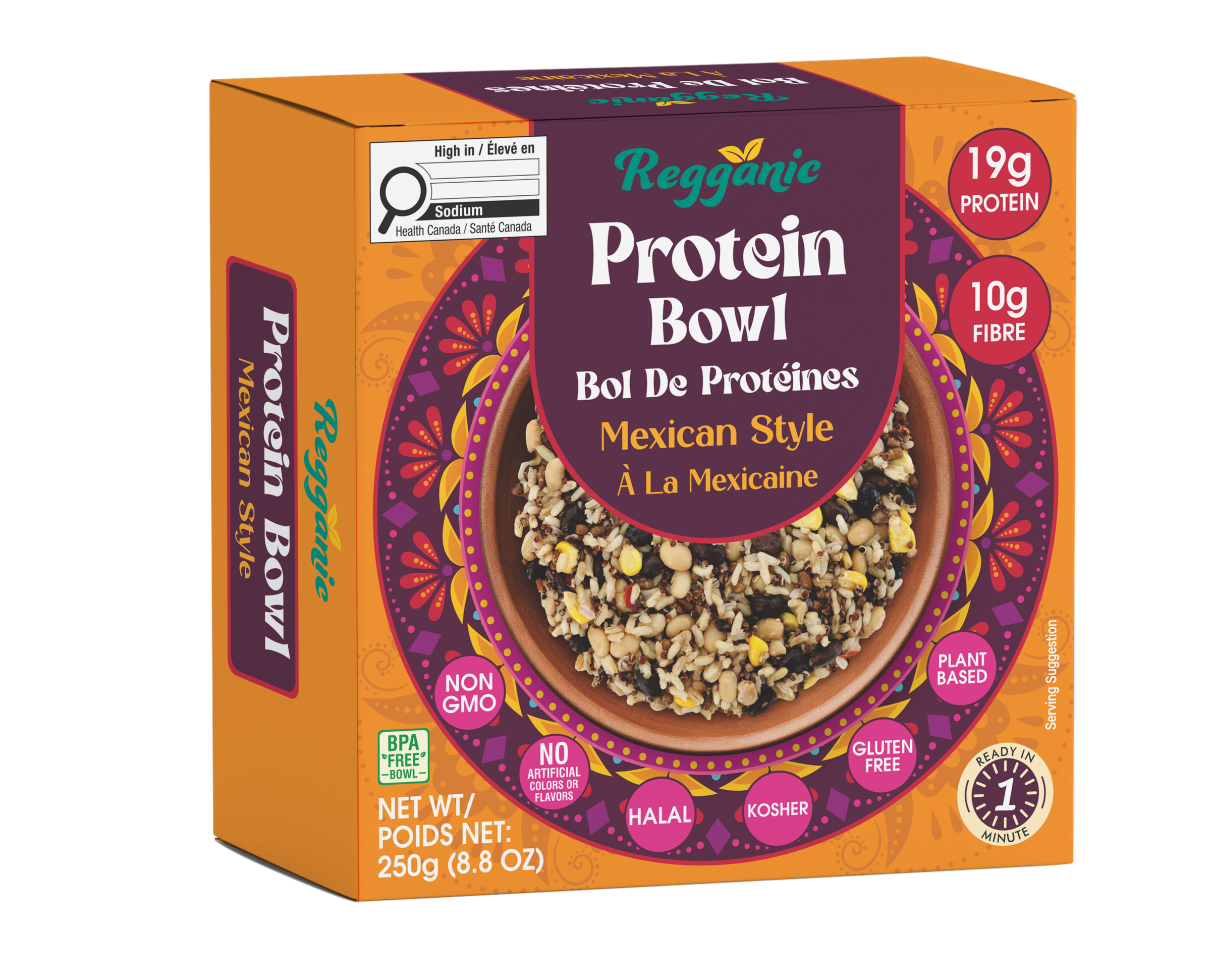 A bold and satisfying plant-based meal inspired by classic Mexican flavors. Regganic Mexican Style Protein Bowl combines wholesome rice, quinoa, and a hearty mix of beans with sweet corn and savory spices for a vibrant, balanced dish. Packed with 19g of plant-based protein and fiber, this ready-to-eat bowl delivers delicious taste and nutrition in every bite. Perfect for a quick lunch, dinner, or anytime meal that’s ready in minutes.